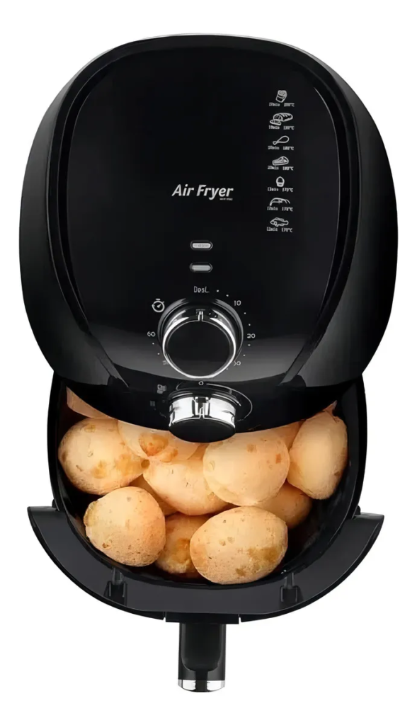 Com capacidade de 3,5 litros, ela é ideal para preparar pequenas porções de alimentos de forma rápida e saudável. O modelo possui controle de temperatura de até 200 °C, timer de 60 minutos e tecnologia de circulação de ar quente, que garante alimentos crocantes e saborosos sem a necessidade de óleo.